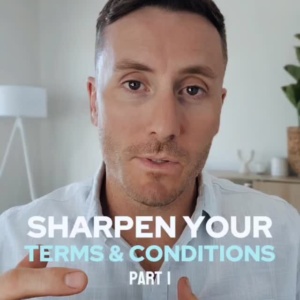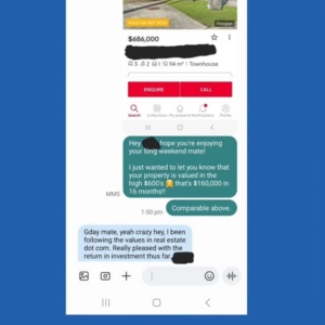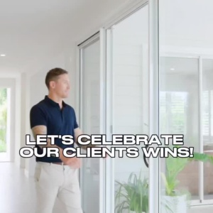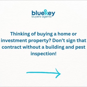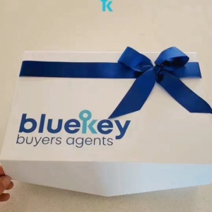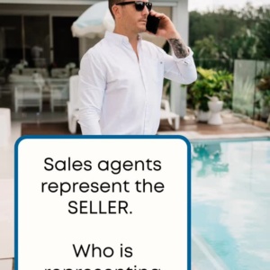 Travis Meade of Blue Key Buyers Agents with his logo behind him